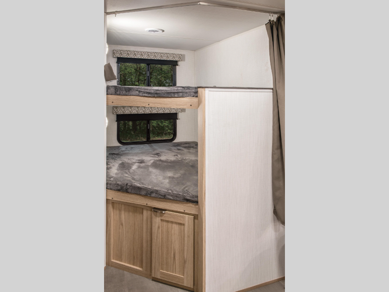Sleeps 9 Slides 1 Length 32 ft Ext Width 8 ft 1 in Ext Height 11 ft 2 in Hitch Weight 1010 lbs GVWR 8000 lbs Dry Weight 6626 lbs Cargo Capacity 1352 lbs Fresh Water Capacity 44 gals Grey Water Capacity 60 gals Black Water Capacity 30 gals Furnace BTU 30000 btu Number Of Bunks 2 Available Beds Queen Refrigerator Type 12V Refrigerator Size 10 cu ft Cooktop Burners 3 Number of Awnings 1 Axle Weight 3500 lbs LP Tank Capacity 20 lbs Water Heater Capacity 6 gal Water Heater Type Tankless AC BTU 13500 btu Axle Count 2 Number of LP Tanks 2 Shower Type Standard Electrical Service 30 amp Similar Floorplans