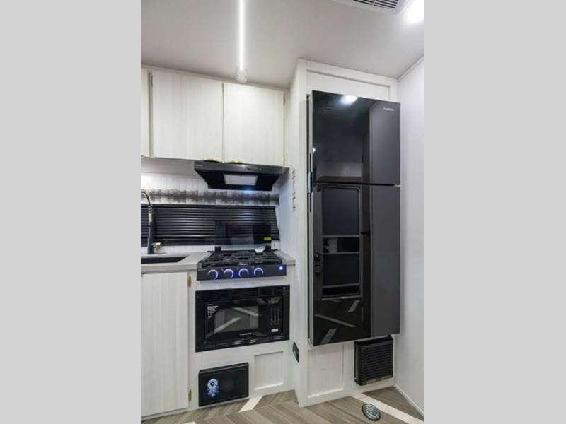 Sleeps 6 Slides 1 Length 36 ft 5 in Ext Width 8 ft Ext Height 11 ft 6 in Hitch Weight 1345 lbs GVWR 11545 lbs Dry Weight 7648 lbs Cargo Capacity 3897 lbs Fresh Water Capacity 54 gals Grey Water Capacity 80 gals Black Water Capacity 40 gals Available Beds King Refrigerator Type 12V Convection Cooking Yes Cooktop Burners 3 Number of Awnings 1 LP Tank Capacity 20 lbs Water Heater Type Tankless On Demand Awning Info 19' Power w/Adjustable Legs and LED Lights Axle Count 2 Number of LP Tanks 2 Shower Type Standard Similar Floorplans