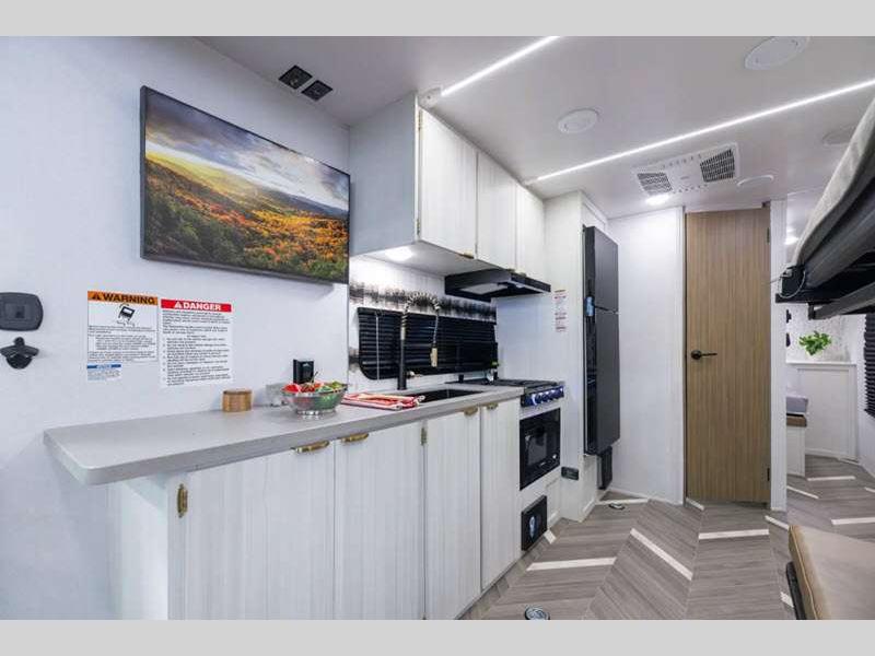 Sleeps 4 Length 23 ft 4 in Ext Width 8 ft Ext Height 11 ft 2 in Hitch Weight 740 lbs GVWR 9540 lbs Dry Weight 5228 lbs Cargo Capacity 4312 lbs Fresh Water Capacity 54 gals Grey Water Capacity 40 gals Black Water Capacity 40 gals Number Of Bunks 1 Available Beds Queen Refrigerator Type 12V Convection Cooking Yes Cooktop Burners 3 Number of Awnings 1 Garage Size 10 ft 4 in LP Tank Capacity 20 lbs Water Heater Type Tankless On Demand Awning Info 14' Power w/LED Light Strip & Adjustable Legs Axle Count 2 Number of LP Tanks 2 Shower Type Standard Similar Floorplans
