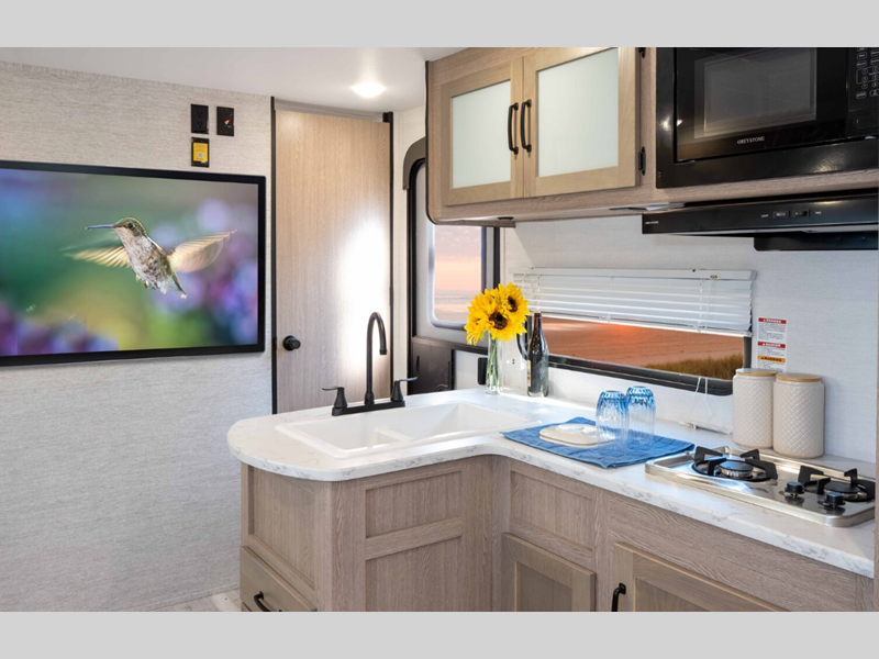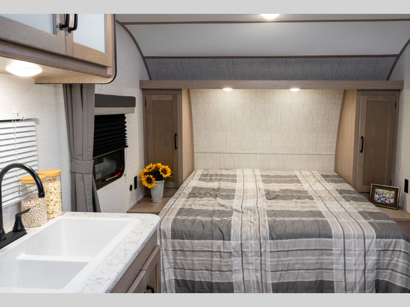 Sleeps 3 Slides 1 Length 22 ft 11 in Ext Width 8 ft Ext Height 11 ft 2 in Int Height 6 ft 8 in Hitch Weight 400 lbs Dry Weight 4360 lbs Cargo Capacity 3027 lbs Fresh Water Capacity 36 gals Grey Water Capacity 29 gals Black Water Capacity 29 gals Tire Size 14" Furnace BTU 20000 btu Available Beds Queen Refrigerator Type Everchill Refrigerator/Freezer Refrigerator Size 10.7 cu ft Cooktop Burners 3 Number of Awnings 1 LP Tank Capacity 20 lbs Water Heater Type Tankless AC BTU 13500 btu Awning Info Electric with LED Lights Axle Count 2 Number of LP Tanks 2 Shower Type Radius Similar Floorplans