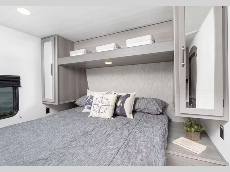 Sleeps 5 Slides 1 Interior Color Pewter Furnace BTU 30000 btu Available Beds Queen Refrigerator Type 12V Refrigerator Size 10 cu ft Number of Awnings 1 LP Tank Capacity 20 lbs Water Heater Type Tankless AC BTU 15500 btu Awning Info 18' Power Axle Count 2 Number of LP Tanks 3 Shower Type Standard Similar Floorplans