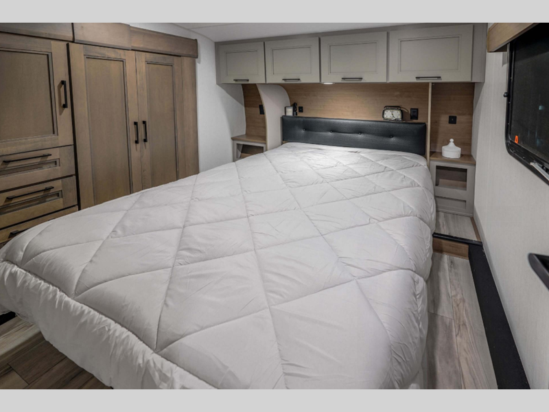 Sleeps 5 Slides 2 Length 31 ft 8 in Ext Width 8 ft Ext Height 12 ft 5 in Interior Color Mink, Pebble Exterior Color Polar White Hitch Weight 1470 lbs GVWR 11000 lbs Dry Weight 8940 lbs Cargo Capacity 2060 lbs Fresh Water Capacity 55 gals Grey Water Capacity 90 gals Black Water Capacity 50 gals Tire Size 16" Furnace BTU 35000 btu Available Beds Queen Refrigerator Type French Door Style Refrigerator Size 12 cu ft Cooktop Burners 3 Shower Size 30" x 36" Number of Awnings 1 Axle Weight 7470 lbs LP Tank Capacity 30 lbs Water Heater Type On Demand Tankless AC BTU 15000 btu TV Info LR 50" Smart LED TV Awning Info 19' Electric with LED Lights Axle Count 2 Washer/Dryer Available Yes Number of LP Tanks 2 Shower Type Standard Electrical Service 50 amp Similar Floorplans