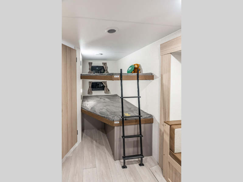 Sleeps 10 Slides 1 Length 32 ft 10 in Ext Width 8 ft Ext Height 10 ft 8 in Int Height 6 ft 6 in Interior Color Mink, Mushroom Grey, Noce Biscotti Hitch Weight 830 lbs GVWR 8000 lbs Dry Weight 6410 lbs Cargo Capacity 1590 lbs Fresh Water Capacity 45 gals Grey Water Capacity 32 gals Black Water Capacity 32 gals Tire Size 15" Furnace BTU 30000 btu Number Of Bunks 3 Available Beds Queen Refrigerator Type 12 Volt Refrigerator Size 10 cu ft Cooktop Burners 3 Shower Size 30" x 40" Number of Awnings 1 Axle Weight 5580 lbs LP Tank Capacity 20 lbs Water Heater Type Tankless AC BTU 13500 btu TV Info LR LED TV Awning Info 16' Power Axle Count 2 Number of LP Tanks 2 Shower Type Standard Electrical Service 30 amp Similar Floorplans