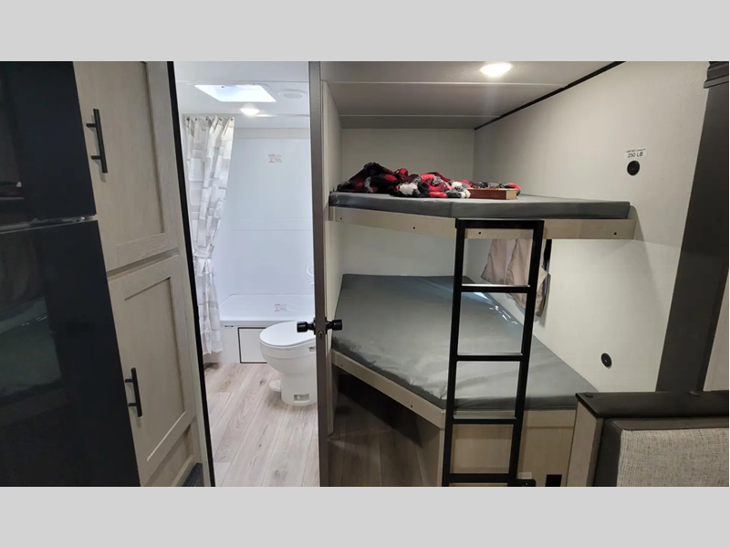 Sleeps 8 Slides 1 Length 31 ft 2 in Ext Width 8 ft Ext Height 11 ft 3 in Hitch Weight 670 lbs GVWR 7570 lbs Dry Weight 5573 lbs Cargo Capacity 1997 lbs Fresh Water Capacity 39 gals Grey Water Capacity 30 gals Black Water Capacity 30 gals Number Of Bunks 2 Available Beds RV Queen Refrigerator Type Residential Style Refrigerator Size 8 cu ft Cooktop Burners 3 Number of Awnings 1 LP Tank Capacity 20 lbs. Water Heater Type Tankless AC BTU 13500 btu Axle Count 2 Number of LP Tanks 1 Shower Type Standard Similar Floorplans